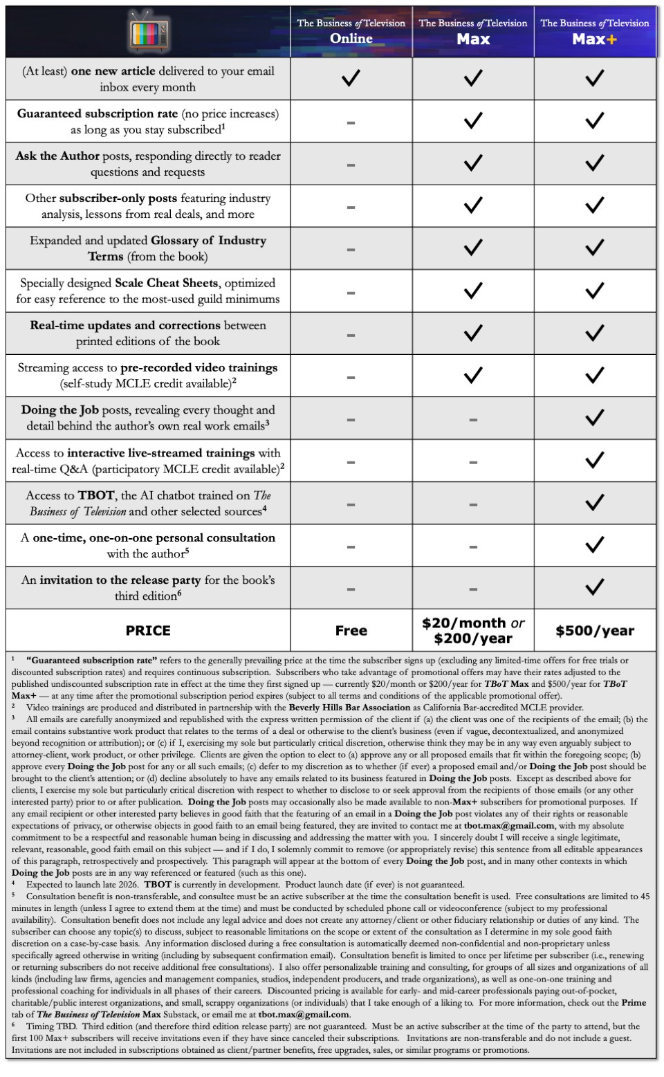 An invitation to the release party for the third edition (and the release party for the second edition was kind of a banger). Terms and conditions apply, including that you must be an active Max+ subscriber at the time the party actually takes place (probably somewhere in the 2028–2030 range?). That is, unless you’re one of the first 100 people to subscribe to The Business of Television Max+ in which case you’ll receive your invitation even if you’re no longer a subscriber at the time the third edition is released.6